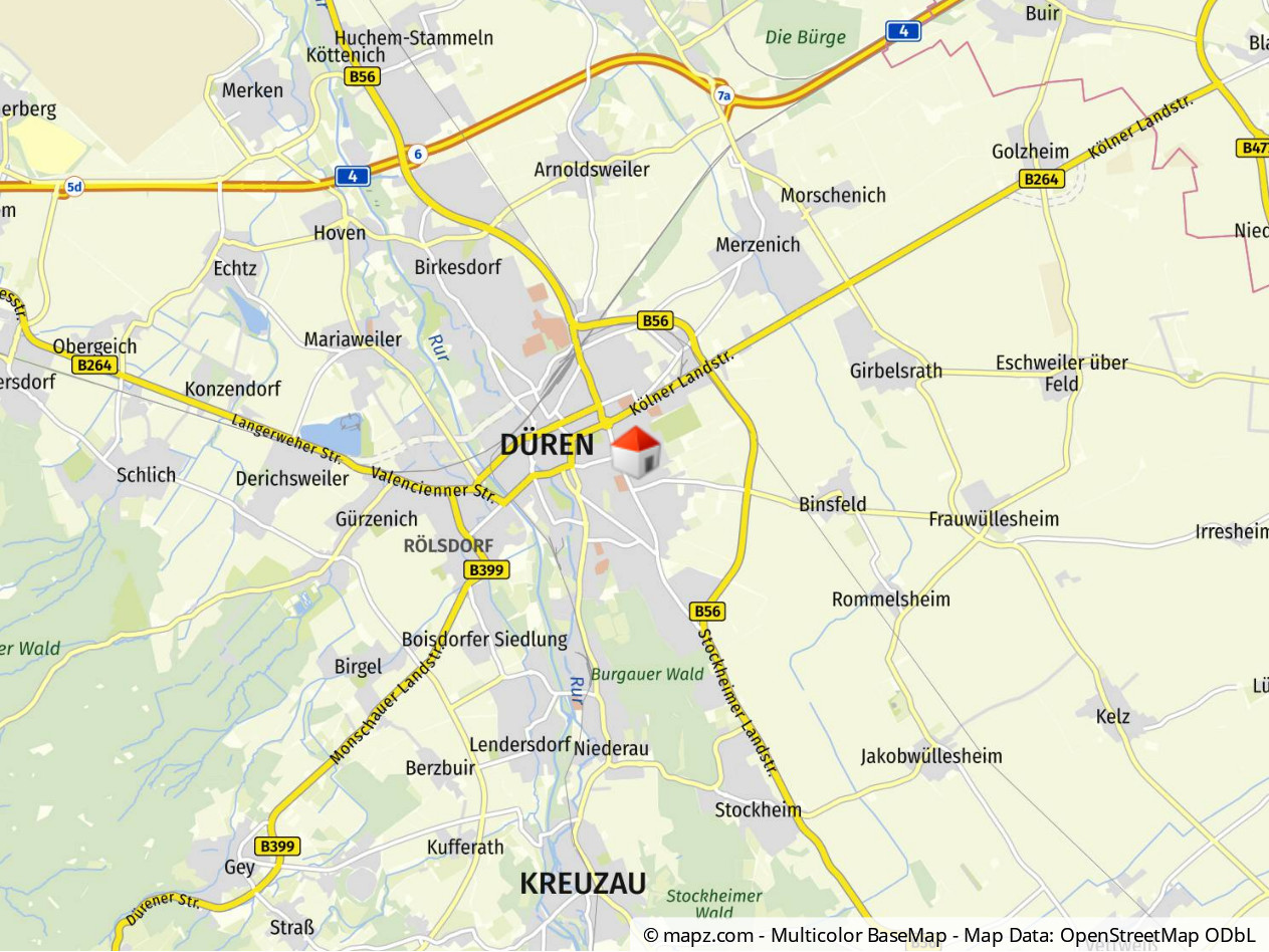 Die Nähe zu Grünflächen und kleinen Parkanlagen lädt zu Spaziergängen und ruhigen Momenten im Freien ein. Gleichzeitig erreichen Sie von hier aus auch schnell überregionale Ziele – sei es mit dem Auto über die A4 in Richtung Köln und Aachen oder mit der Bahn über die gut getaktete Regionalverbindung.
